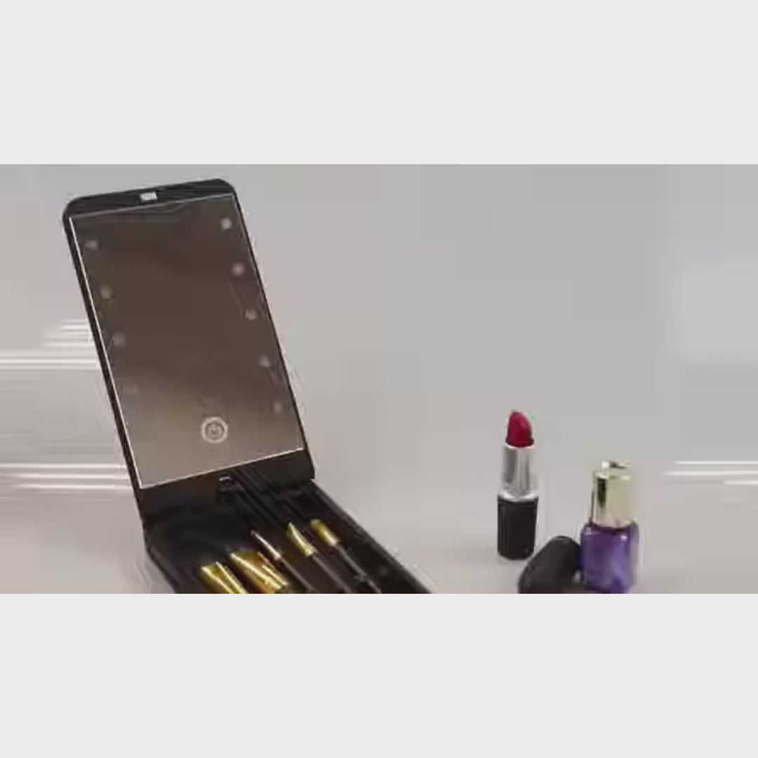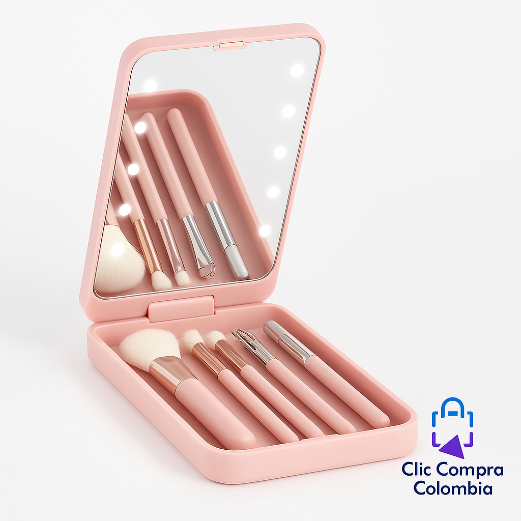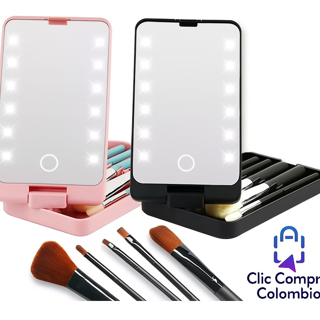 💄✨ Espejo de Maquillaje LED con Porta Brochas