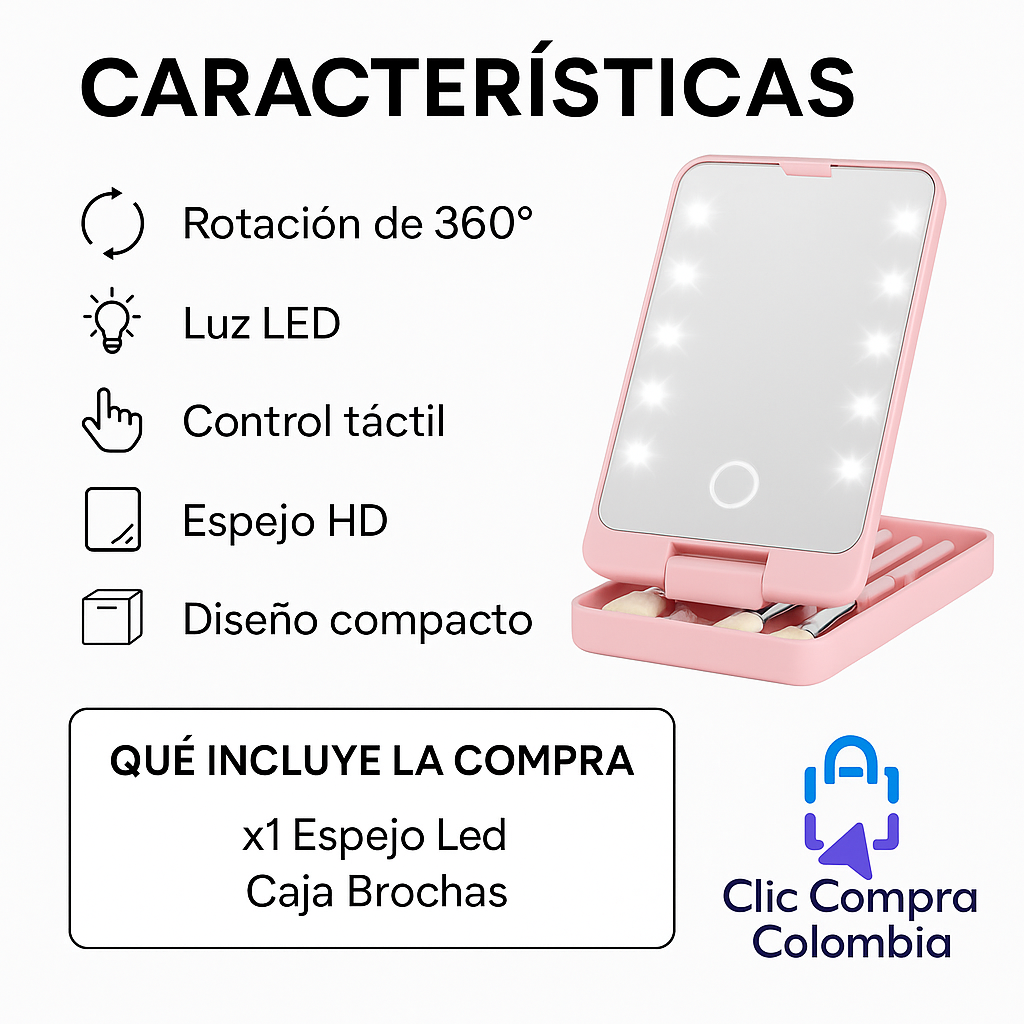 Su diseño plegable, elegante y compacto te permite llevarlo fácilmente a cualquier lugar, y su rotación de 360° asegura el ángulo perfecto para cada paso de tu rutina de belleza.