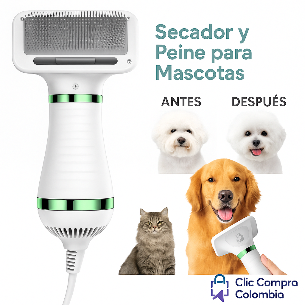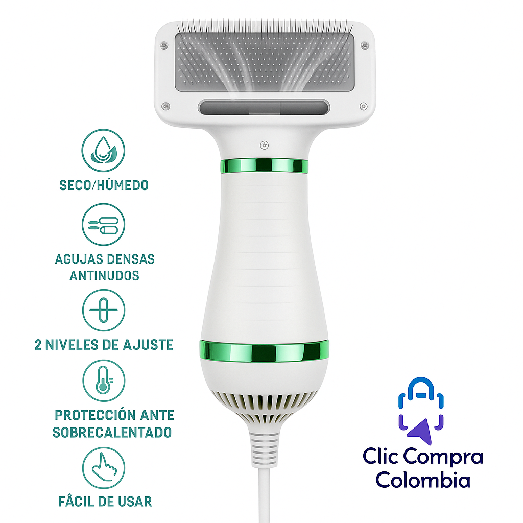 🐶Cepillo Secador 2 en 1 para Mascotas – Peina, Seca y Desenreda Sin Estrés