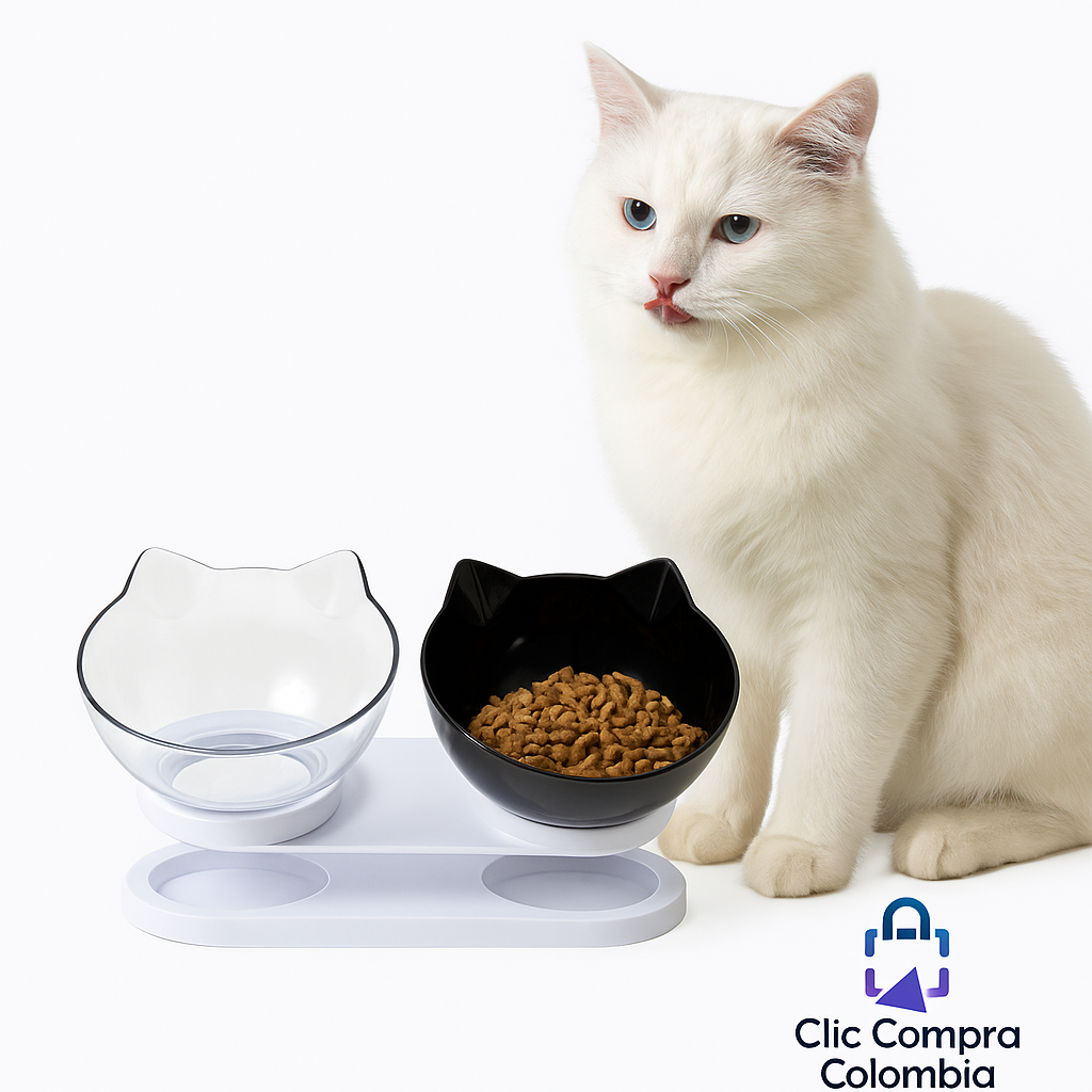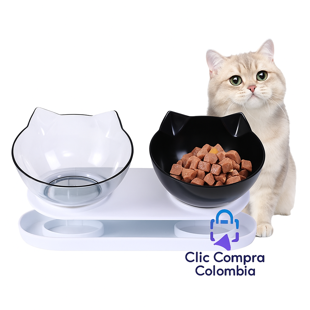 Comedero Doble Antideslizante para Gatos 🐱🐾
