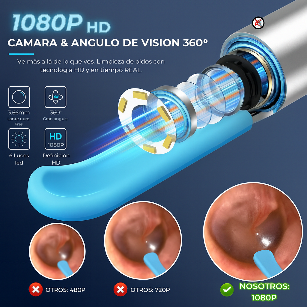Limpiador Inteligente de Oídos con Cámara HD 360° | Conexión WiFi y Luz LED